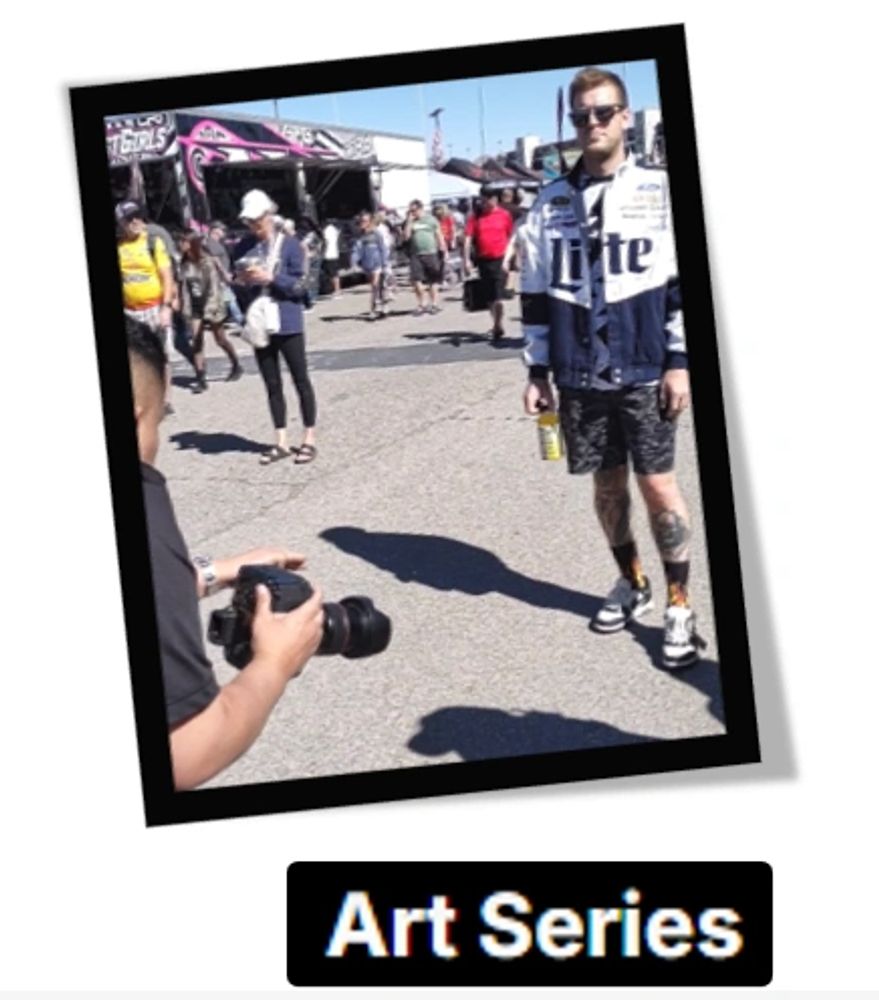 Nascar driver Noah Gragson with a custom Lumachrome Josh Blaney "Fastcar" painting in Las Vegas!